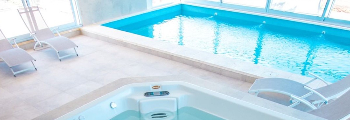 Piscina Sauna y y Jacuzzi interior rodeada de un cálido deck para disfrutar durante todo el año.